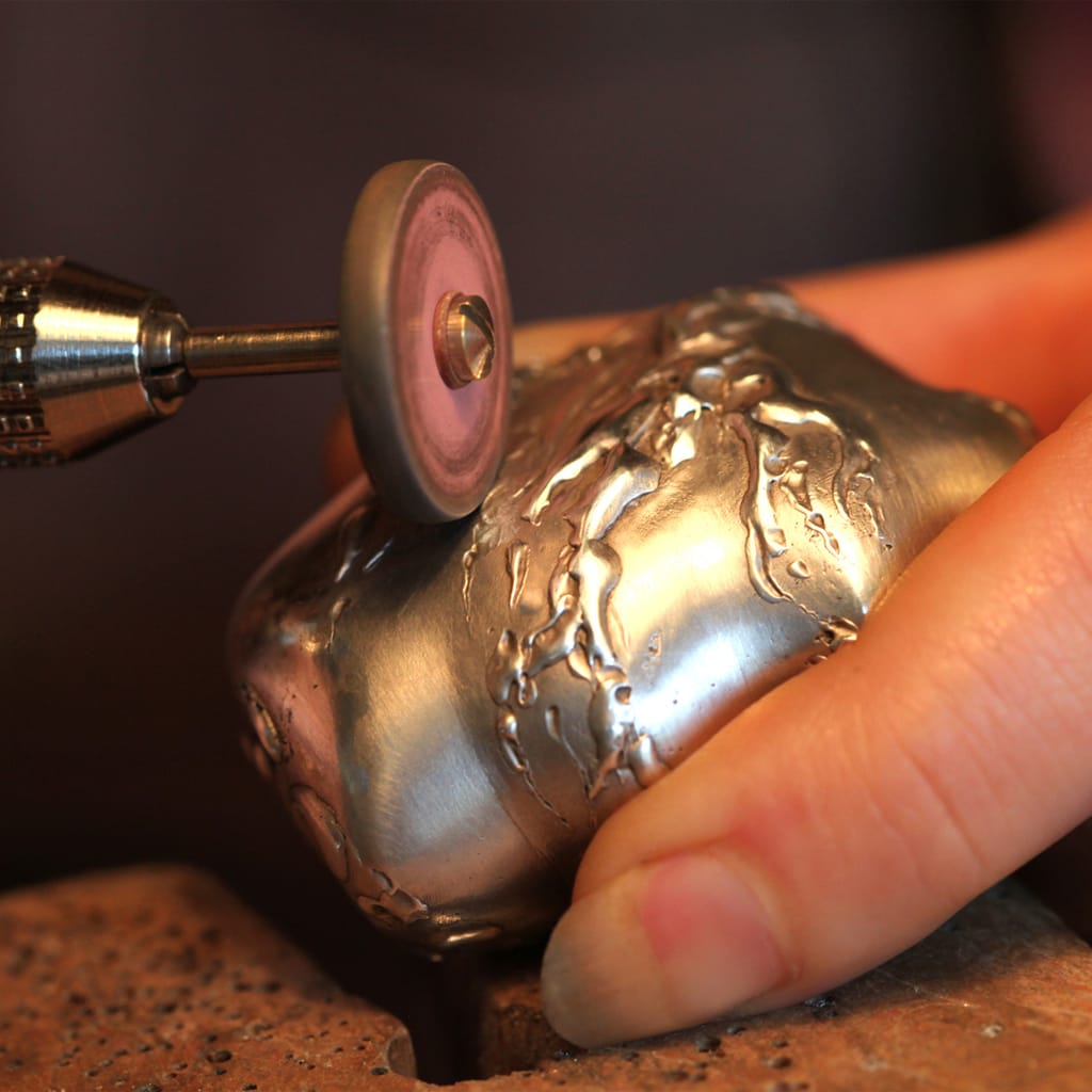 De la conception à la fabricationAvant de créer un bijou, le bijoutier-joaillier, en concertation avec le client, conçoit et dessine le bijou avant d'en donner une estimation. Il passe ensuite à la fabrication : fonte des métaux, composition des alliages, façonnage de la matière première pour réaliser la maquette en cire, puis en métal. Enfin, après avoir déterminé l'emplacement des pierres, il procède au perçage et au fraisage.