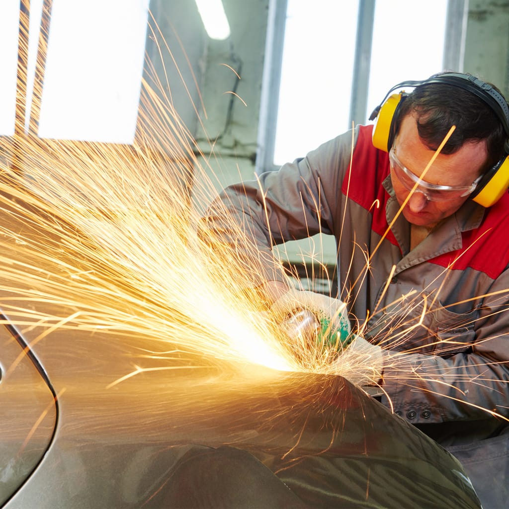 Répare par remise en forme ou remplacement des éléments endommagés de carrosserie ou de structure (passage au marbre, ...)